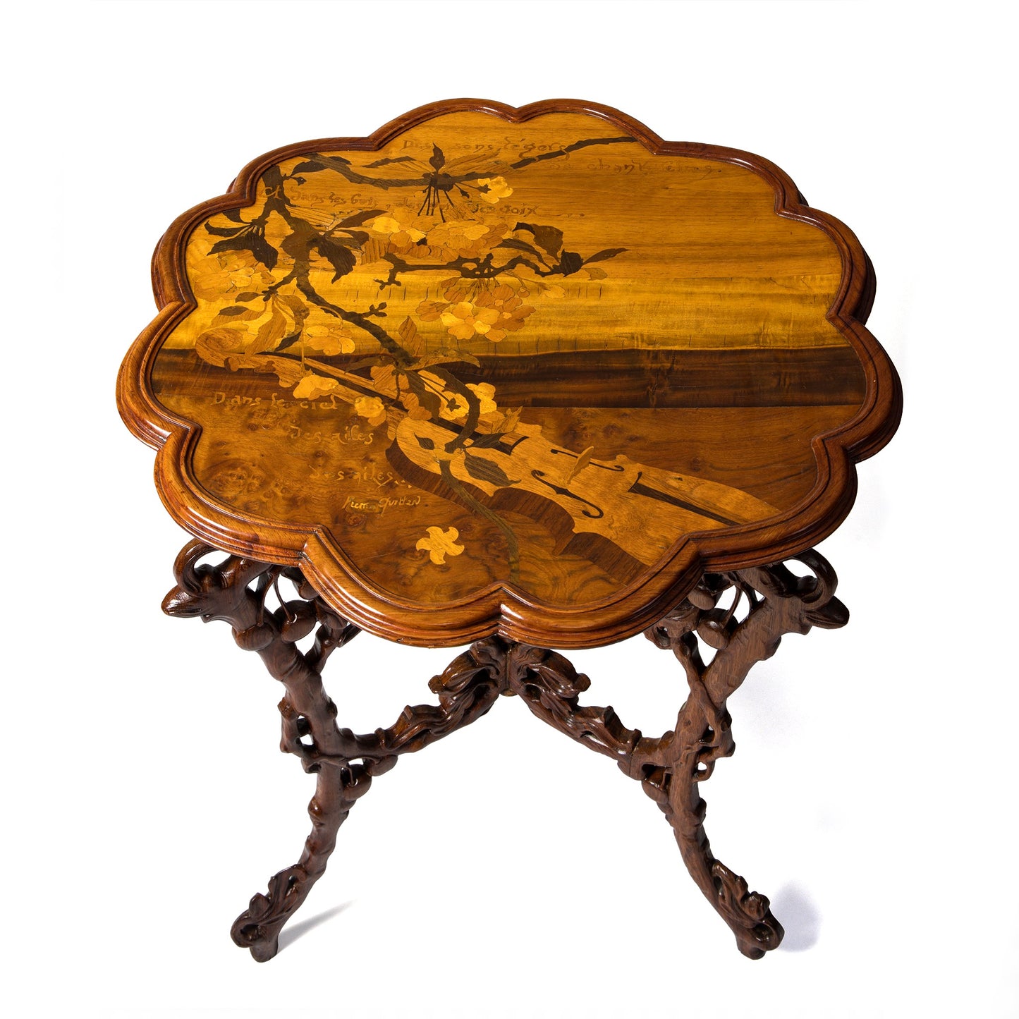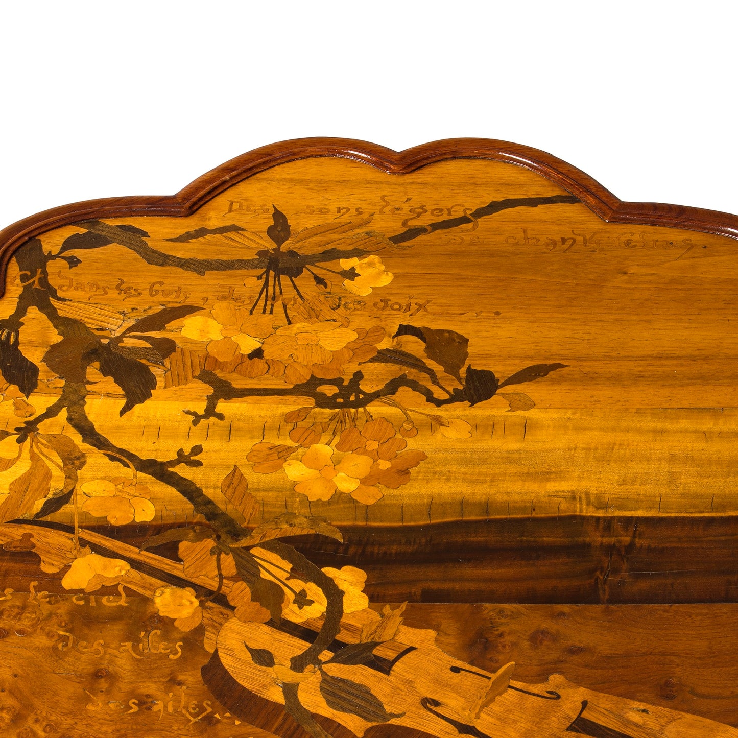 The term chanterelle is richly layered: archaically, it denotes a songbird, yet in musical usage it refers to the highest string of a bowed instrument—the E string of the violin—associated with brilliance and aerial clarity. Quillard’s imagery thus resonates doubly, linking avian song to the luminous upper register of stringed instruments. Elsewhere in the poem, he invokes oboes and harps, extending this orchestral evocation beyond what is visually represented on the table.